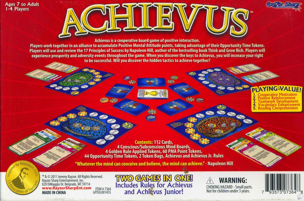 成功者の多くが所蔵しているナポレオン・ヒル博士の成功哲学がゲーム化されたもので、みんなの心を一つにして目標を達成する協力達成ゲームです。